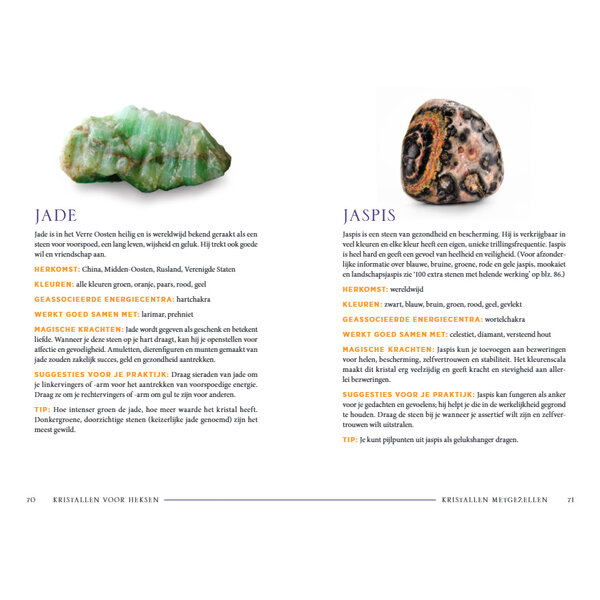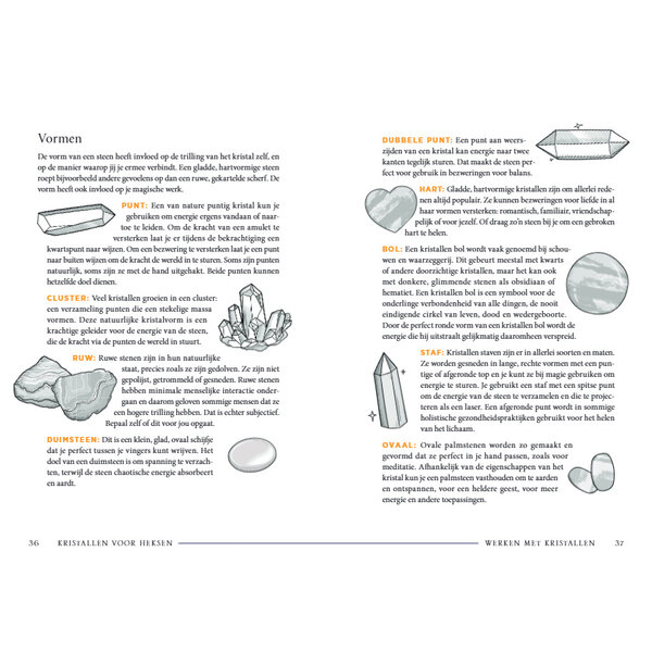 Verder leer je waarom kristallen zo'n belangrijk onderdeel zijn van hekserij. Je ontdekt praktische manieren om een relatie op te bouwen met het wezen in een kristal. En je krijgt tips en richtlijnen voor het opstellen van altaren, grids, meditaties, bezweringen en wat je verder in je praktijk gebruikt.